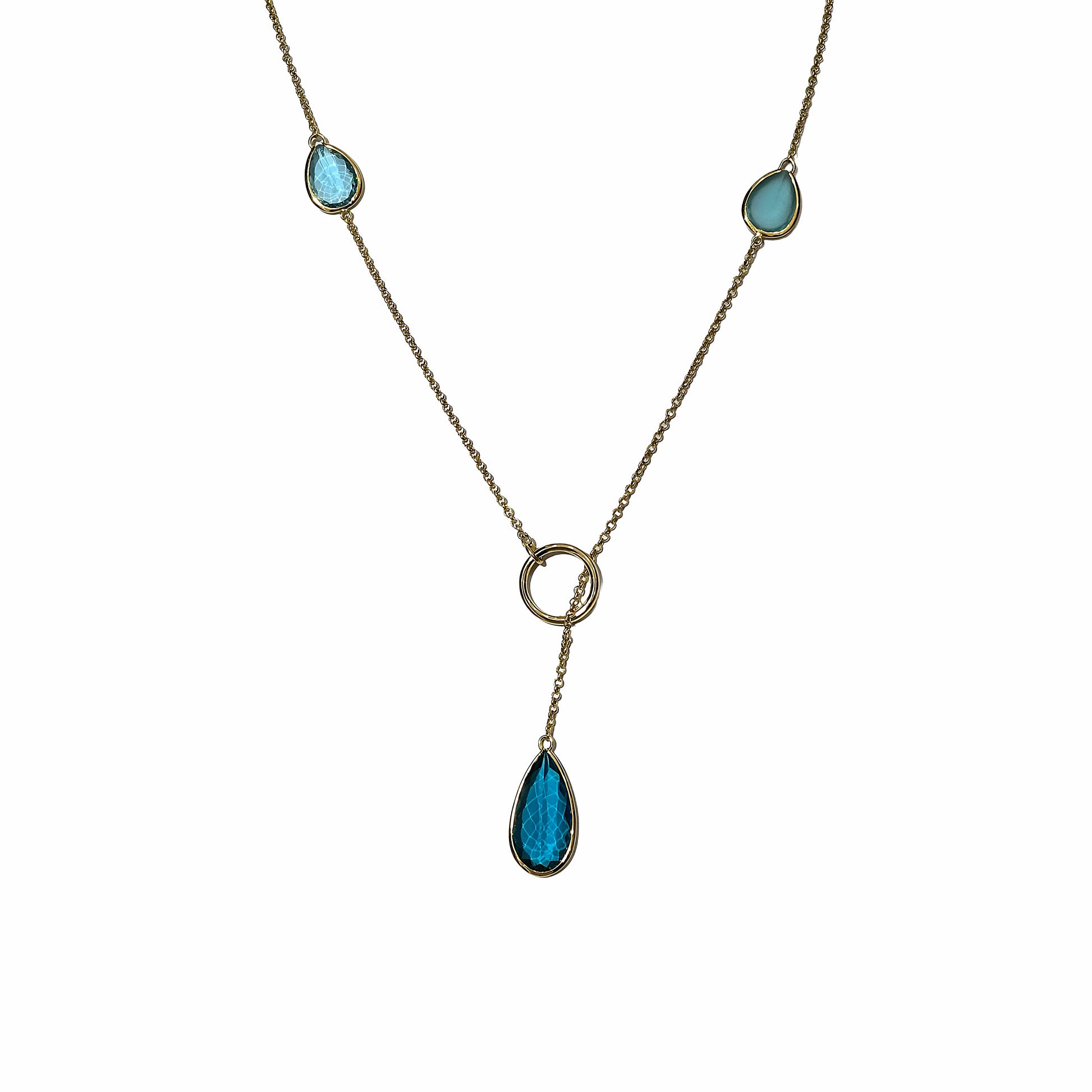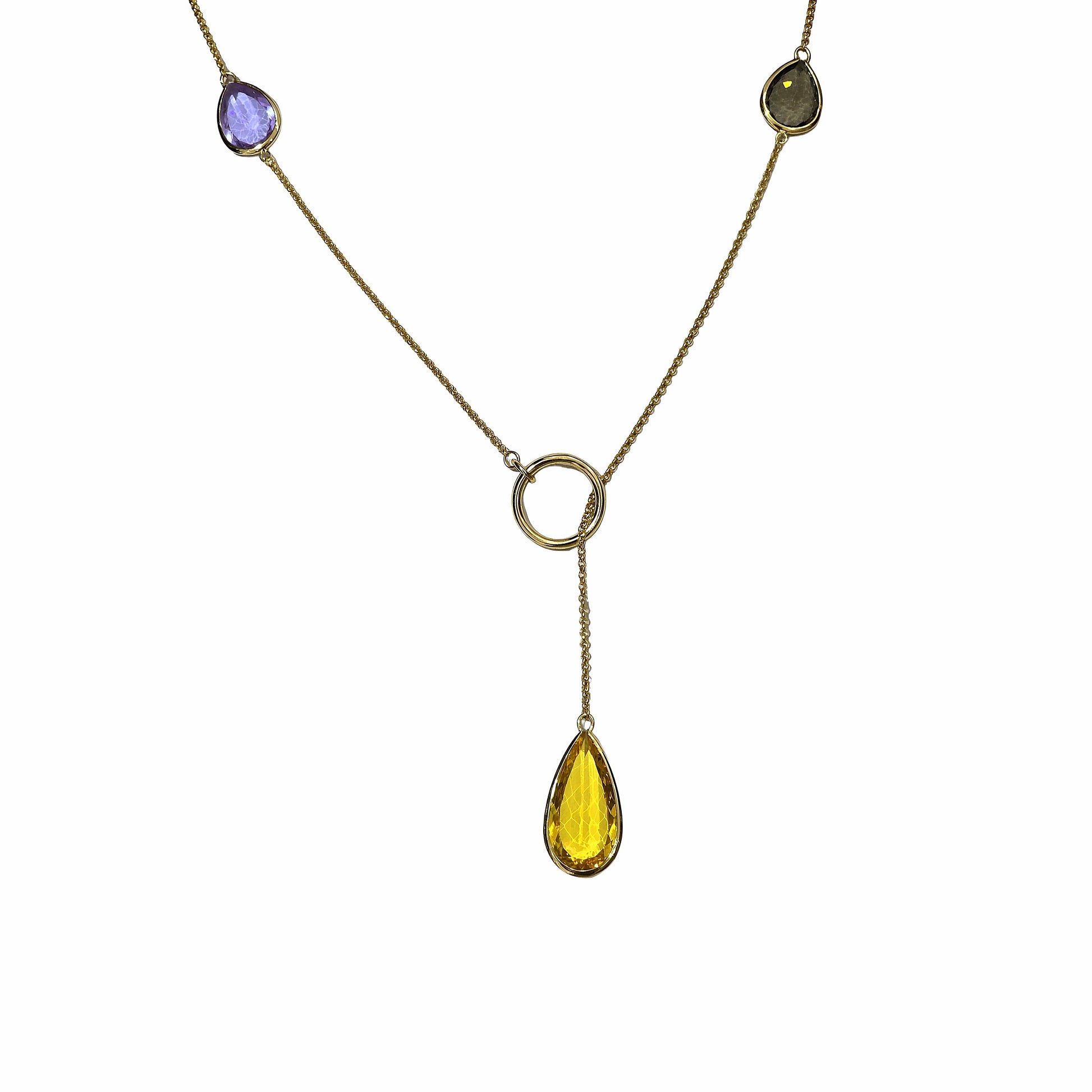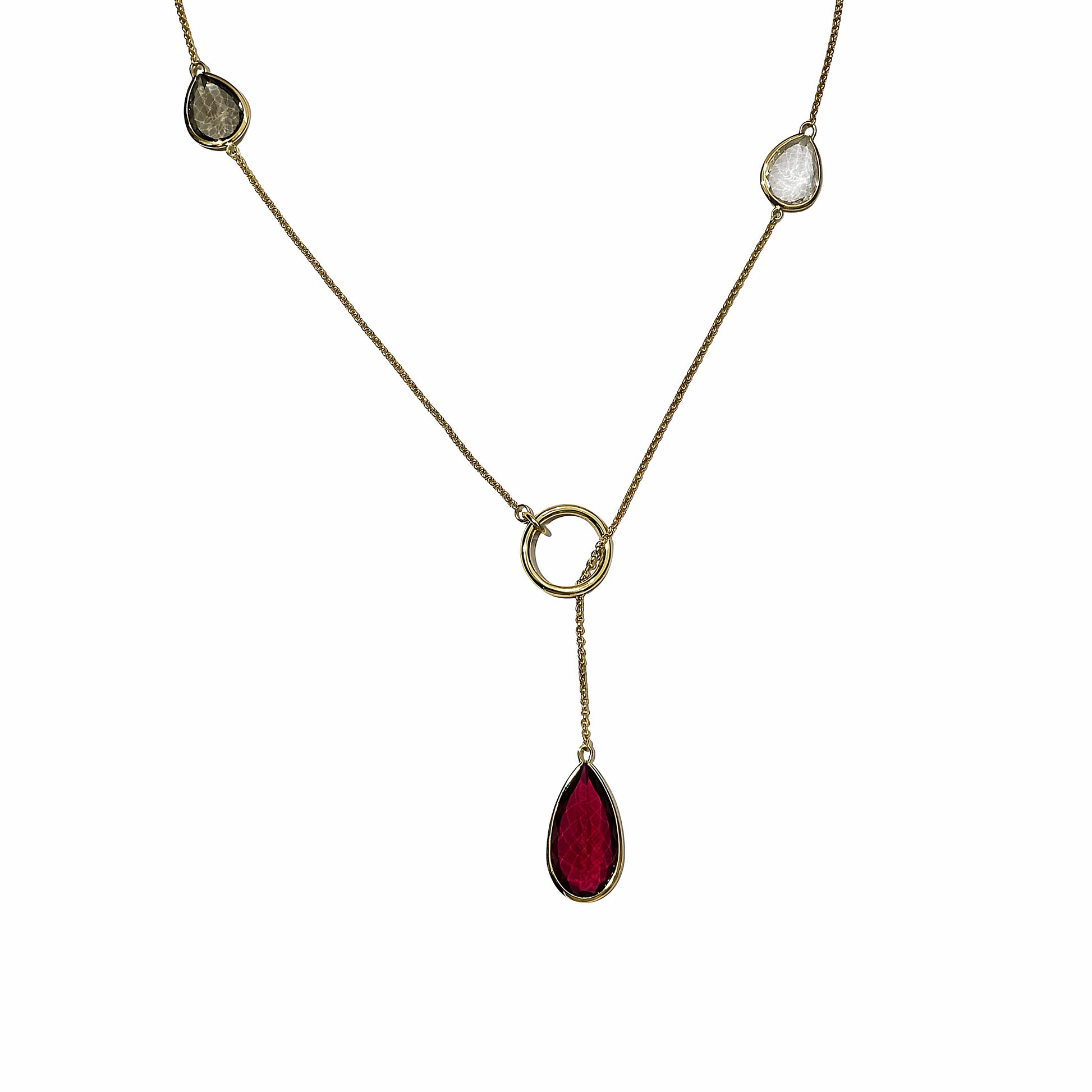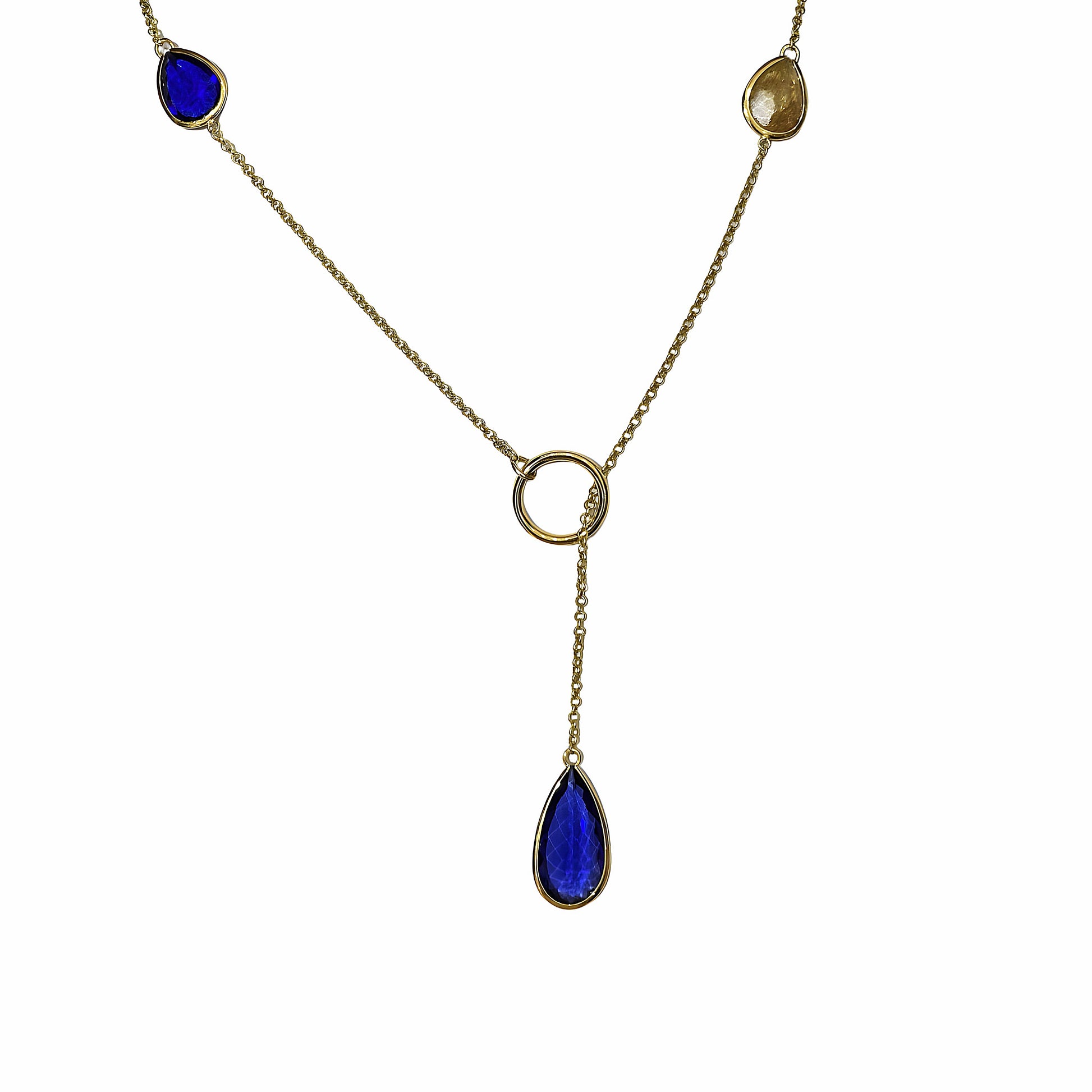 18Kt Gold Inlay, Precious Color Gemstone Lariat Necklace, Nickel-Free.